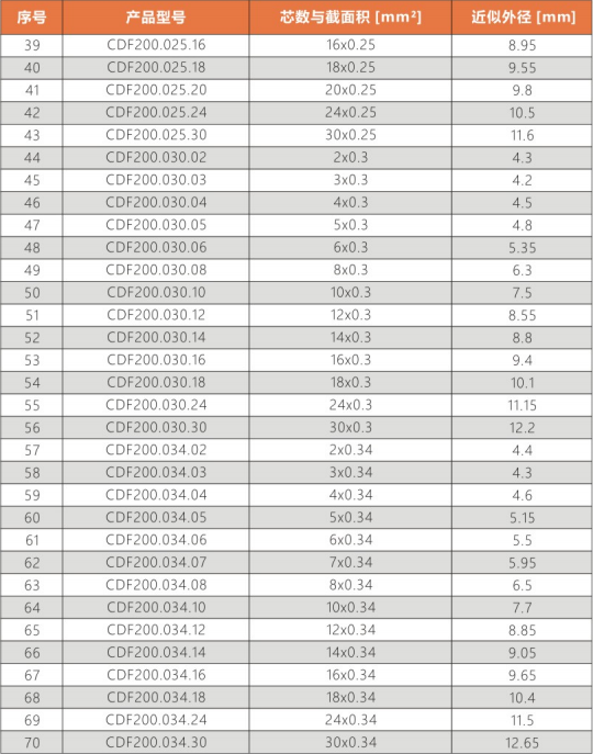 使用溫度范圍 : 非拖鏈內運動:-35 ℃ 至 80 ℃