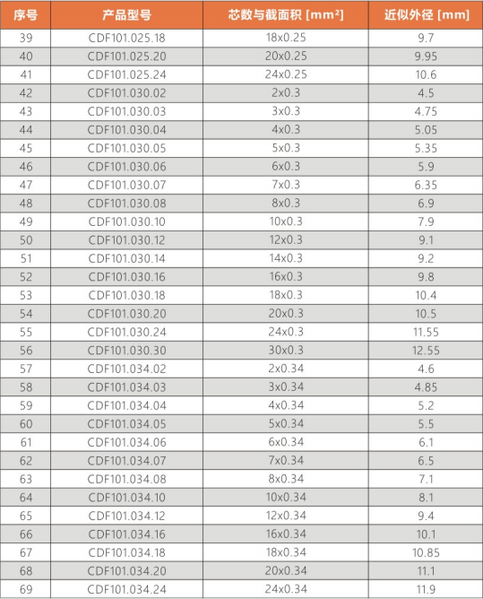 CDF101系列是順電針對自動化設備精心打造的高性能數據傳輸拖鏈電纜。采用多層結構設計,確保抗拉性能與柔韌性并存。特制的屏蔽層有效降低電磁干擾,提高信號傳輸穩定性。適用于各種復雜工況,能夠在高速運動、標準彎曲半徑拖鏈中的場景下表現出色。為您的自動化設備帶來卓越品質與穩定性能。