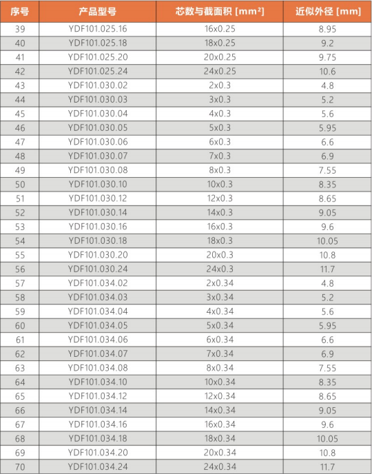 使用溫度范圍 : 非拖鏈內運動:-5 ℃ 至 105 ℃