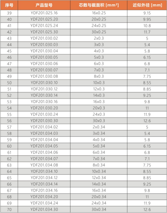 使用溫度范圍 : 非拖鏈內運動:-35 ℃ 至 80 ℃